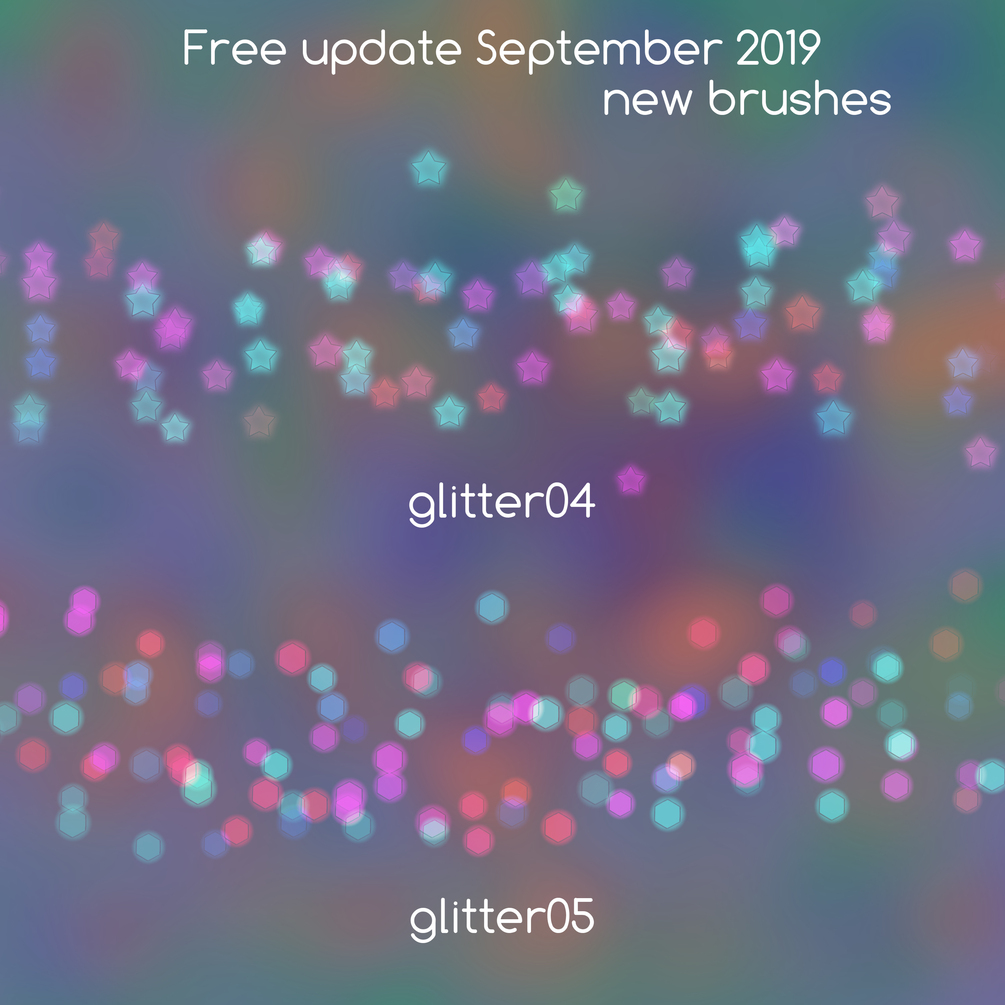 A set of realistic glitter brushes for Photoshop. Contains two different glitter shapes and a sparkle brush for even better effect.